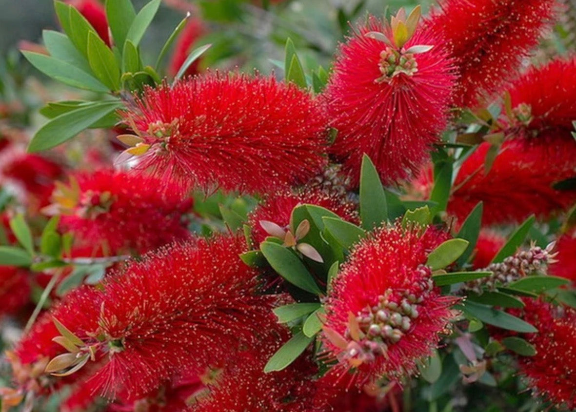 A “Kefevirág”egy feltűnő díszcserje, amely élénkpiros, palackkefe alakú virágairól és örökzöld lombjáról ismert. Ideális szegélyekbe, konténeres virágzáshoz vagy mediterrán stílusú virágzáshoz, vonzza a beporzókat, és merész textúrát és színt kölcsönöz neki tavasztól őszig.