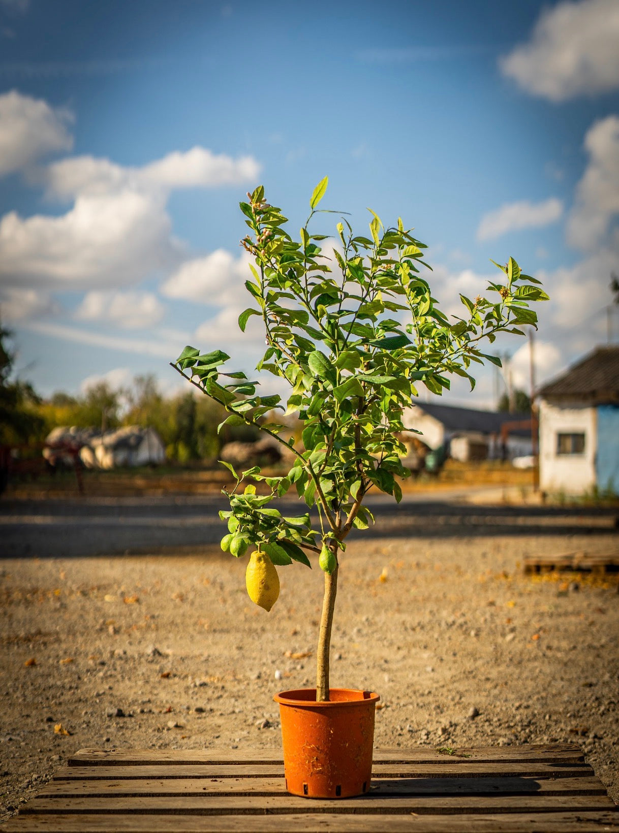 "Citrom törzses" egy dekoratív megjelenésű, törzses citrusfa, amely fényes, zöld leveleivel és illatos, sárga gyümölcseivel díszíti a kertet vagy teraszt. Kompakt formája miatt ideális cserépbe vagy kisebb kertekbe, miközben mediterrán hangulatot és frissességet visz a környezetbe.