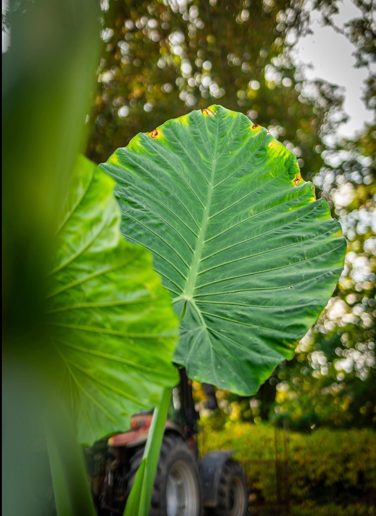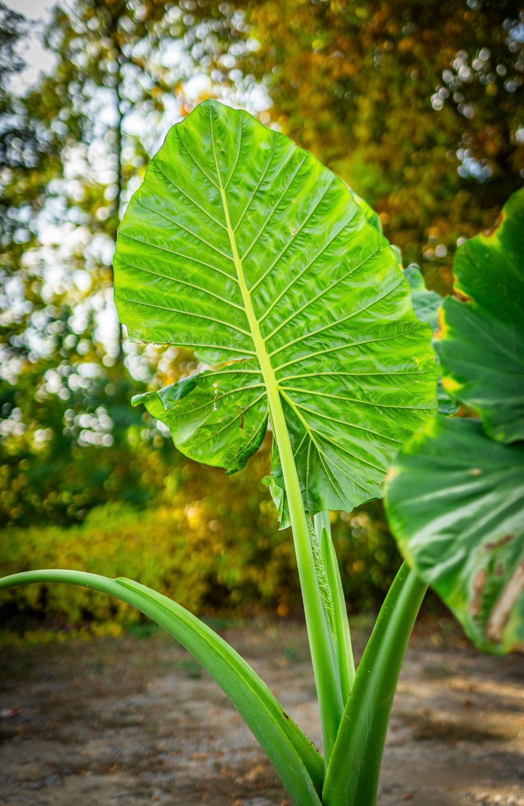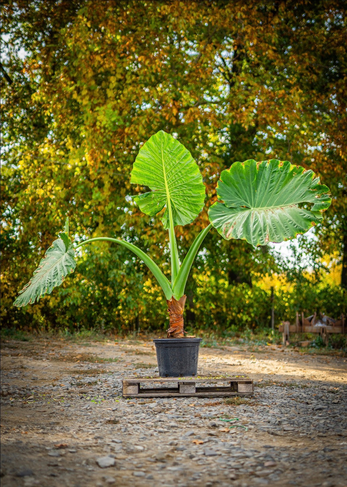 "Elefántfül" egy látványos, trópusi hangulatú dísznövény, hatalmas, szív alakú levelekkel, amelyek az elefánt fülére emlékeztetnek. Meleg, párás környezetben fejlődik a legszebben, és különleges fókuszpontja lehet kertnek vagy beltérnek.