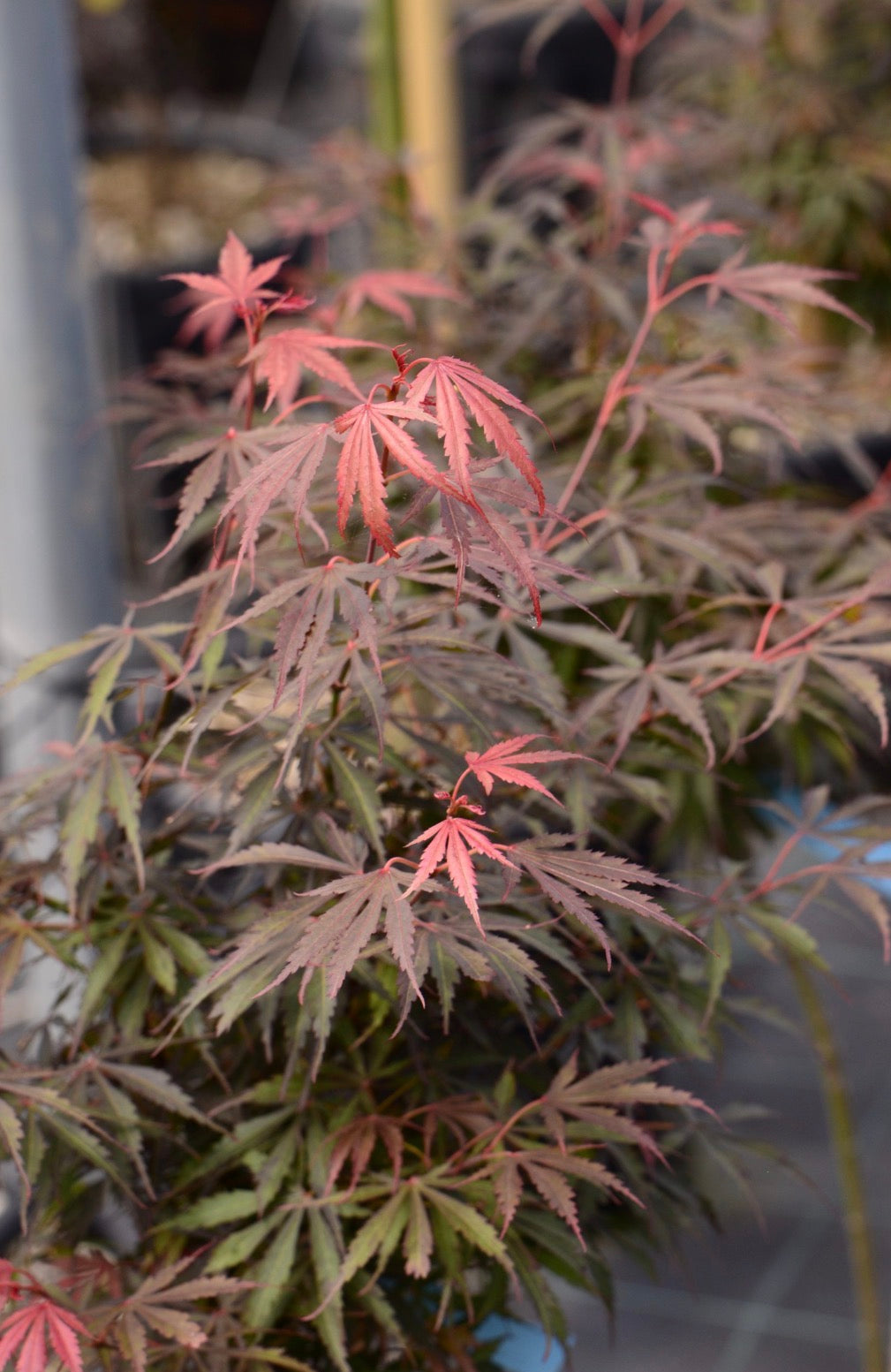 "J. Swartz"egy feltűnő japán juharfajta, amely finoman karéjos leveleiről ismert, amelyek tavasszal élénk rózsaszín-vörösre válnak, mély bordóvá érnek, majd ősszel tüzes árnyalatokba váltanak.