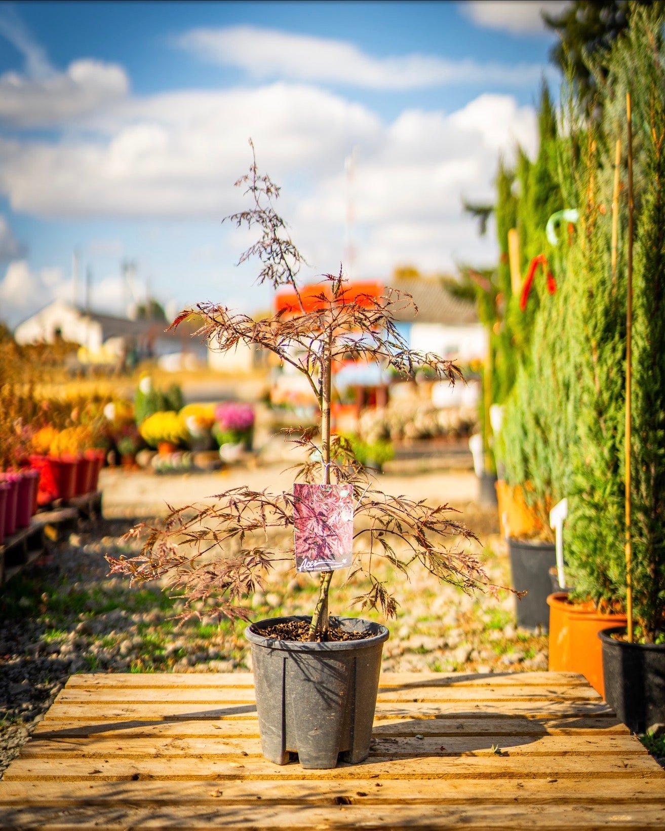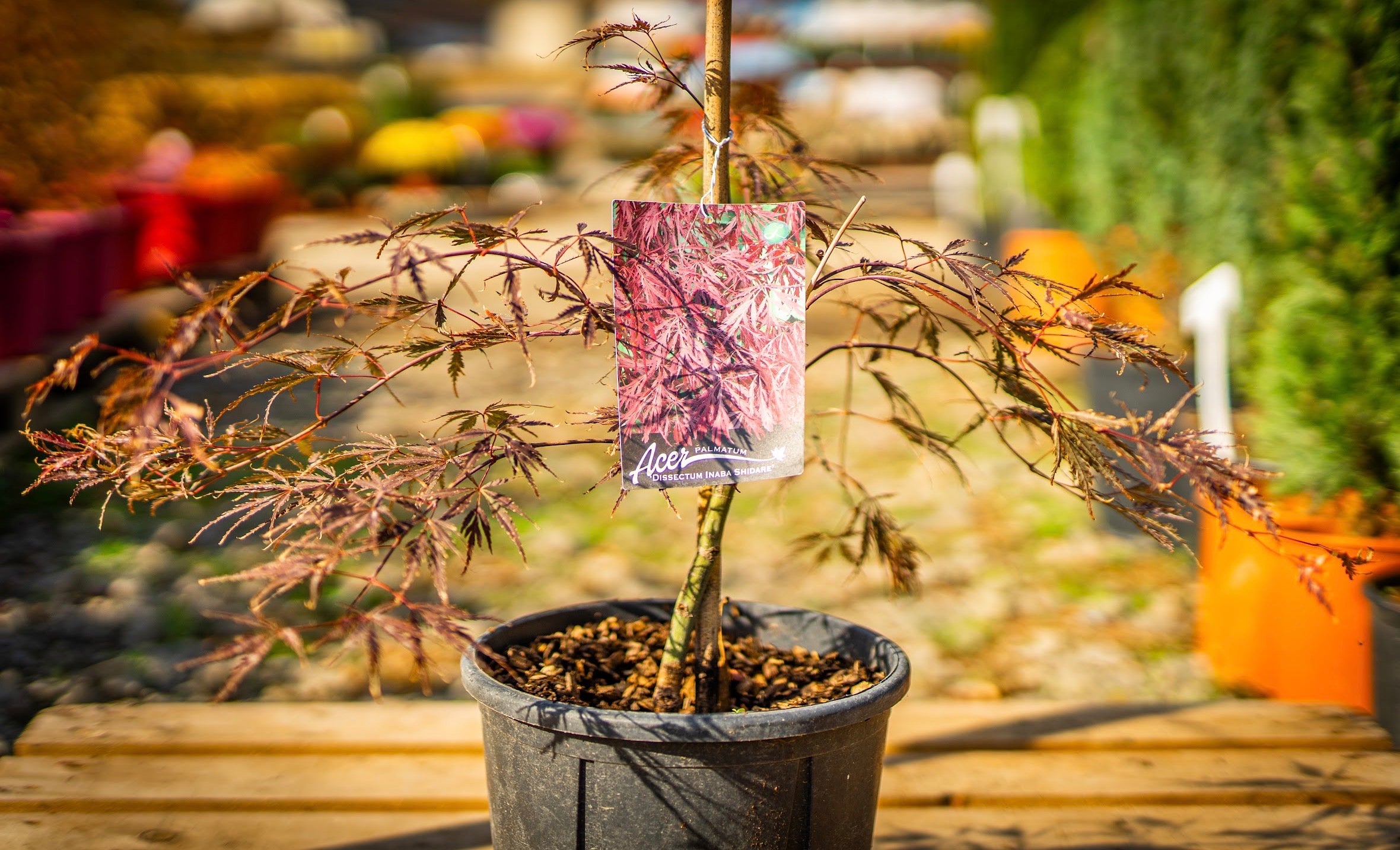 "Japán juhar dissectum inaba shidare" egy elegáns, szeldelt levelű díszfa, amely mélybordó lombszínével és ernyőszerű ágrendszerével különleges hangulatot teremt a kertben. Japán stílusú és árnyas kertekbe ajánlott, ez a lassan növő, félárnyékot kedvelő fajta a kedvence.