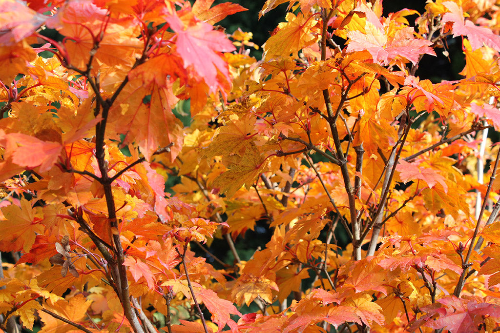 "Vitifolium" is a bold Japanese maple with large, grape-like leaves that turn fiery shades of orange and red in autumn. Perfect for garden highlights or containers, it offers dramatic seasonal color and a lush, textured look.