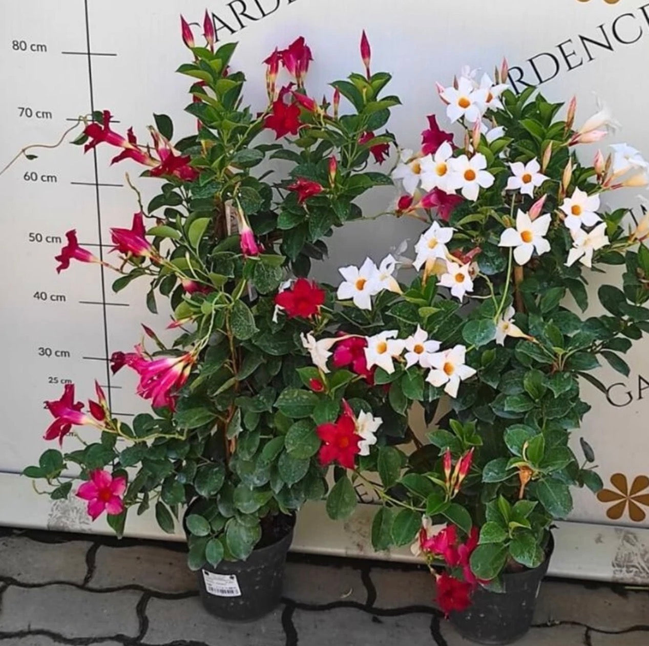 A "Tölcsérjázmin (Piros, fehér)" egy élénk színű kúszónövény fényes zöld levelekkel és trombita alakú virágokkal, feltűnő piros és tisztafehér fajtákban. Ideális lugasokhoz, erkélyekhez vagy díszcserepekbe, tartós virágokat, trópusi hangulatot és minimális gondozást kínál. Tökéletesen alkalmas függőleges szín és elegancia hozzáadására bármilyen kültéri térben.