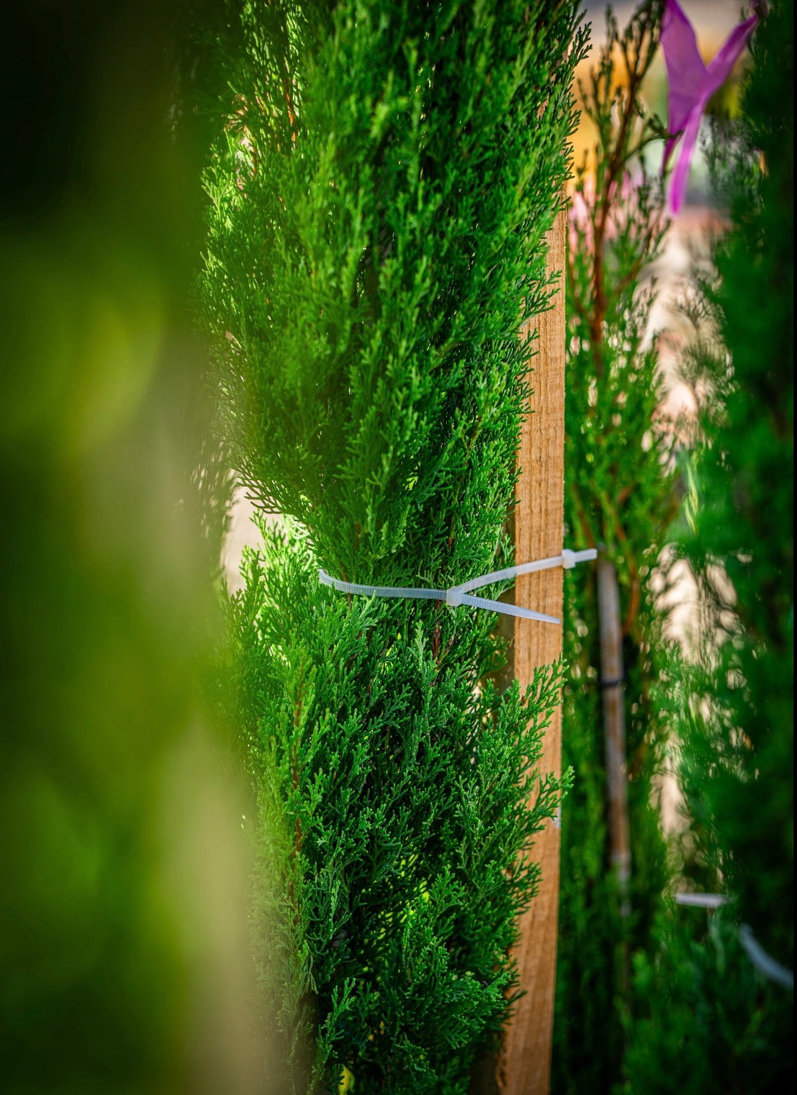 "Leyland Cypress Totem (175–200 cm)"egy függőlegesen metszett örökzöld növény, amely ideális strukturált tereprendezéshez és elválasztó falakhoz. Sűrű, tollas lombozatával és függőleges oszlopos formájával ez a totemforma építészeti eleganciát kölcsönöz a kerteknek, bejáratoknak és teraszoknak.