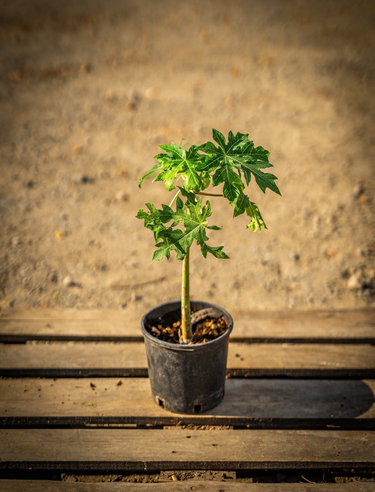 "Papaya" egy trópusi gyümölcsfa buja lombozattal és élénk narancssárga gyümölcsökkel. Ideális meleg éghajlatra és tágas konténerekbe, egzotikus ízt és gyors növekedést kínál minimális gondozással.